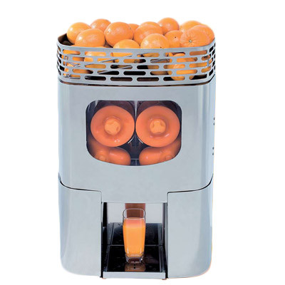 Espremedor totalmente automático de alimentação manual. Design inovador. Dimensão Compacta e reduzida para utilização, desenhada a pensar numa fácil operacionalidade. Opacidade da caixa de recolha, ocultando os detritos e mantendo uma imagem limpa e elegante da máquina durante o todo o seu período de funcionamento. Silenciosa. Totalmente construída em aço inoxidável. Sem manutenção.