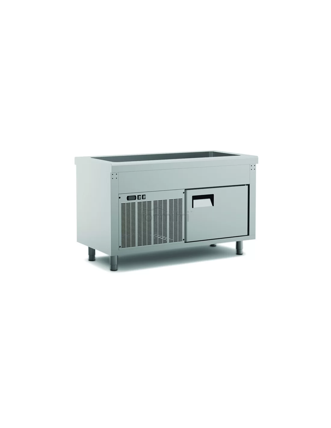 Elemento refrigerado com reserva construído em aço inoxidável.